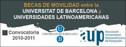 Este programa es una acción de fomento de los estudios de postgrado (Masters propios y Diplomas de postgrado) patrocinado por la Universitat de Barcelona (Vicerrectorado de Relaciones Internacionales e Institucionales y Agencia de Postgrado) en colaboración con la Asociación Universitaria Iberoamericana de Postgrado (AUIP) a través de su Sede Regional en la Universitat de Barcelona.