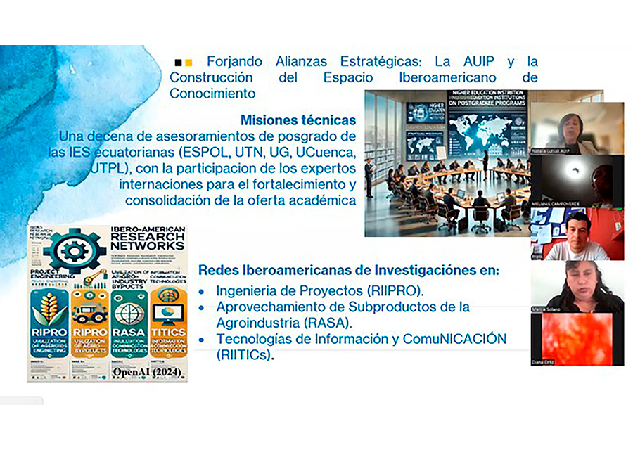 Asimismo, la doctora destacó el crecimiento de Ecuador dentro de esta red académica, que desde 2007 ha pasado de 6 a 22 instituciones asociadas. Este incremento ha permitido beneficiar a estudiantes y docentes con iniciativas de movilidad académica, programas colaborativos y asesorías técnicas especializadas. Finalmente, se hizo un llamado a las instituciones educativas del país para continuar aprovechando los recursos disponibles, fortalecer sus programas de posgrado y potenciar su proyección internacional en beneficio del desarrollo académico regional.